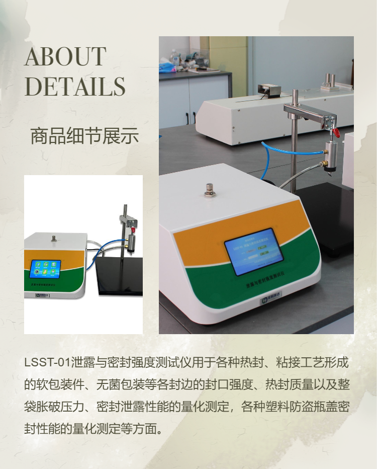 產(chǎn)品多功能融合的優(yōu)勢山東泉科瑞達(dá)儀器設(shè)備有限公司將無菌包裝脹破試驗(yàn)儀、軟包裝封口強(qiáng)度檢測和泄露密封儀的功能集成于一體,一臺設(shè)備即可實(shí)現(xiàn)多項(xiàng)關(guān)鍵檢測,極大節(jié)省廠商的設(shè)備投資和空間資源。